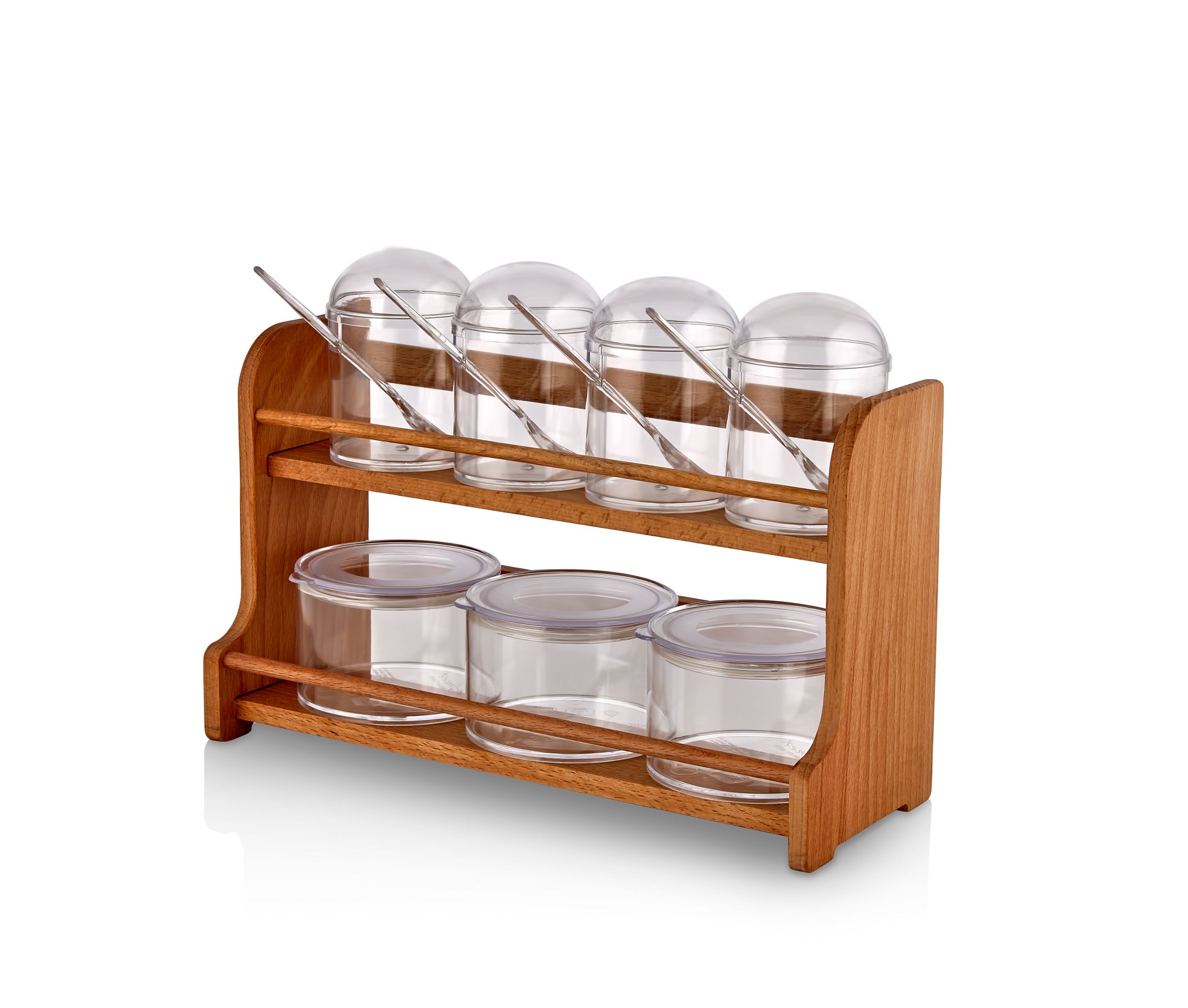 Asir | Gewürzglas & Küchenregal-Set | 100% Kunststoff & Holz
