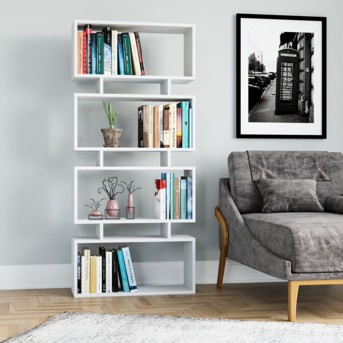 - Hochwertiges Bücherregal aus 100 % melaminbeschichteter Spannplatte.