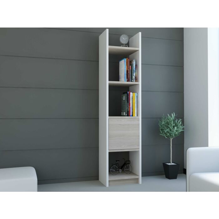 Das Bücherregal besteht aus hochwertiger 100 % melaminbeschichteter Spanplatte, die für Langlebigkeit und Stabilität sorgt. Mit einer Dicke von 18 mm bietet es ausreichend Festigkeit für die Aufbewahrung Ihrer Bücher und Dekorationen. Die Abmessungen von 33,1 cm Breite, 150 cm Höhe und 29,5 cm Tiefe machen es ideal für verschiedene Räume.