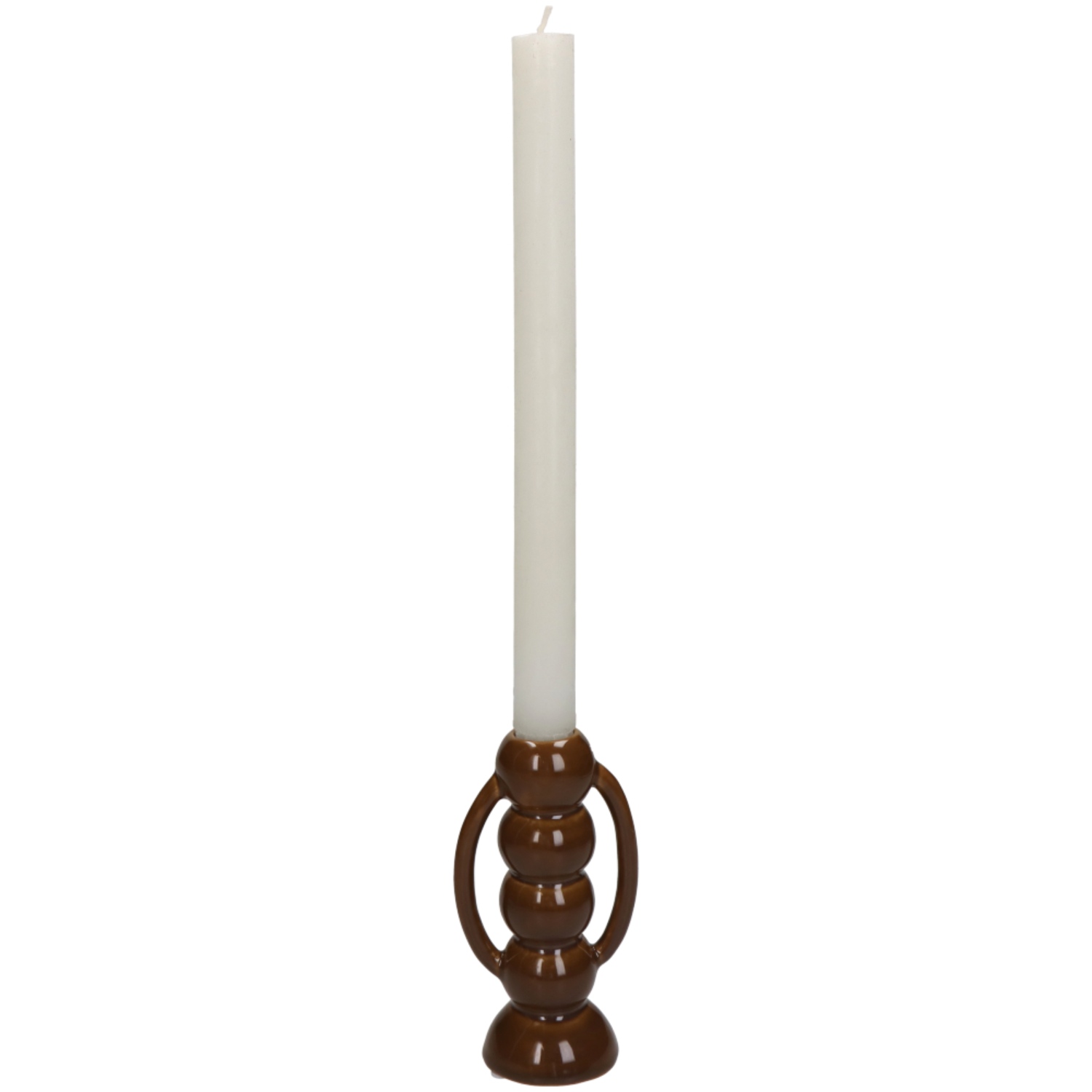SHOPEXEMPLAR | Kerzenhalter | Feines Steingut, Braun, 7,4 x 5,5 x 13,7 cm