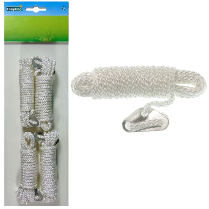 Die Abspannleinen haben eine Länge von 4 Metern und bestehen aus robustem Nylonmaterial. Die Aluminium 3-Spanner haben einen Durchmesser von 3 mm.
