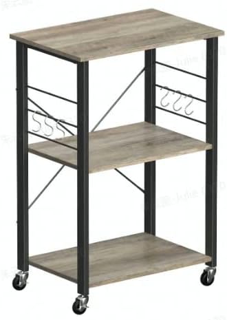 Küchenregal mit Rädern 3 Ebenen Halterung für Mikrowelle Backofen Toaster Metallgestell mit 6 Haken Industrie Grau und Schwarz
