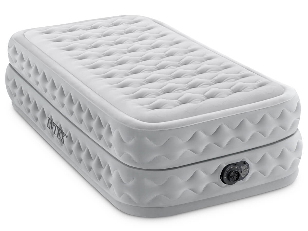 Das Intex Supreme Airflow Luftbett ist eines der luxuriösesten Luftbetten in der Produktreihe. Es besteht aus zwei übereinander liegenden Luftbetten, die für zusätzlichen Komfort und Stabilität sorgen, im Vergleich zu herkömmlichen Luftbetten. Die doppellagige Konstruktion ermöglicht es, das Bettzeug einfach um das Luftbett zu falten, wodurch die Handhabung erleichtert wird.