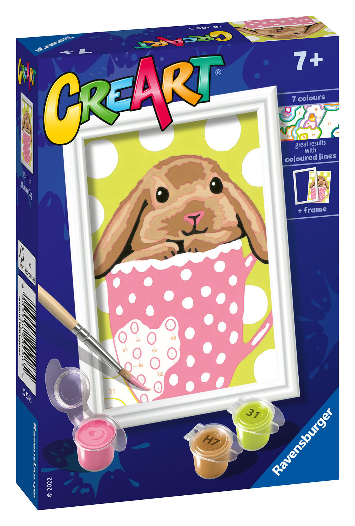 Die Ravensburger Creart Malset "Konijntje in Becher" ist die perfekte Wahl für alle, die Spaß am Malen haben und ihrer Kreativität freien Lauf lassen möchten. Mit dem einfachen Malen nach Zahlen Konzept können sowohl Kinder als auch Erwachsene dieses bezaubernde Motiv in Angriff nehmen. Das Set umfasst alles, was benötigt wird, um das Kunstwerk zu gestalten, einschließlich hochwertiger Farben und eines Pinsels, wodurch das Malen zum reinen Vergnügen wird.