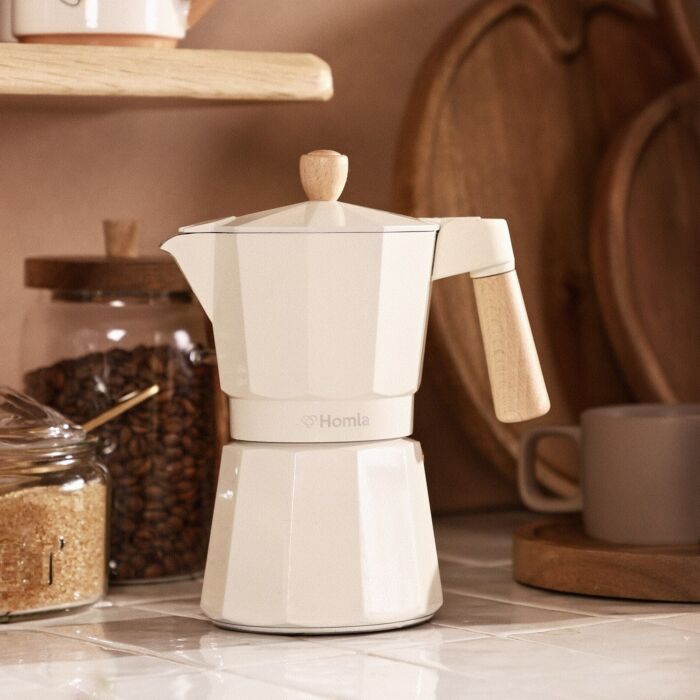 Homla Koffiezetapparaat | MIA MOKKA | beige met houten handvat | 6 CUP | 822594
