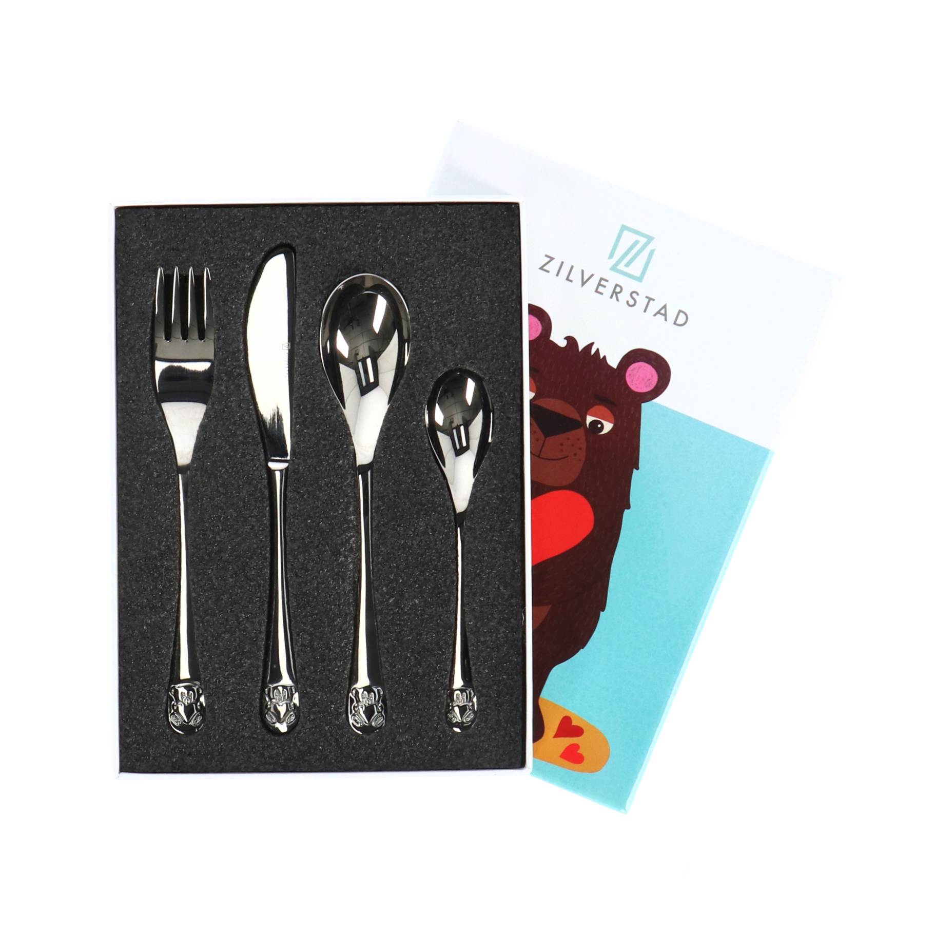 Kinderbesteck-Set mit 4 Teilen – ein süßes und praktisches Besteck-Set für Kinder. Dieses Set enthält ein Messer, eine Gabel, einen Löffel und einen Teelöffel, alle mit niedlichem Bärenmotiv und einem Herzdetail am Griff. Das Material ist kinderfreundlich und langlebig, perfekt für den täglichen Gebrauch.