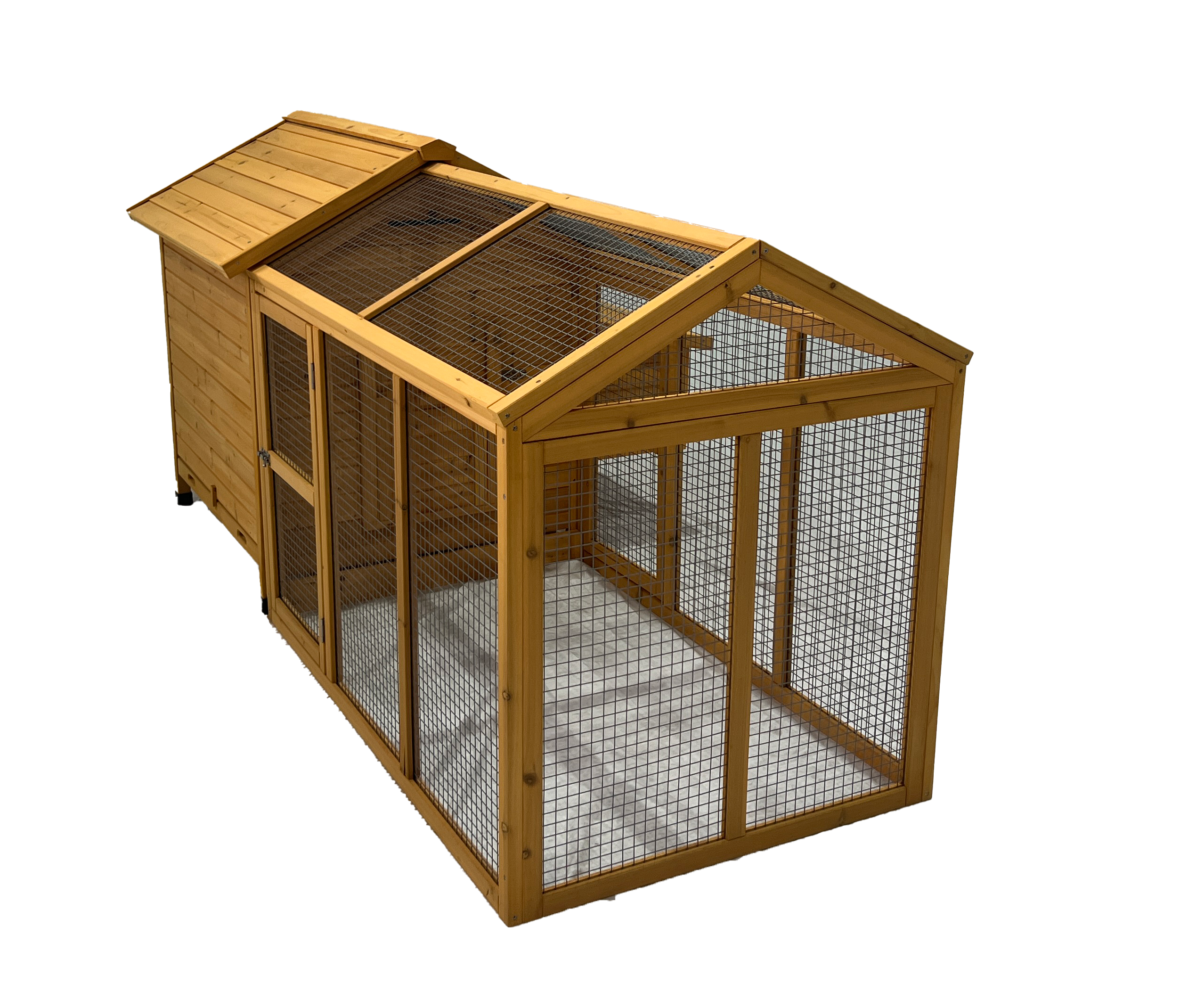 Das Kippenhok hat Abmessungen von 224x26,5x108 cm und steht los vom Boden, was bedeutet, dass es vor Nässe und Schmutz geschützt bleibt. Die robusten Füße sind mit 4 gummierten Zolen ausgestattet, um das Holz vor Abnutzung zu schützen und die Langlebigkeit des Produktes zu gewährleisten.