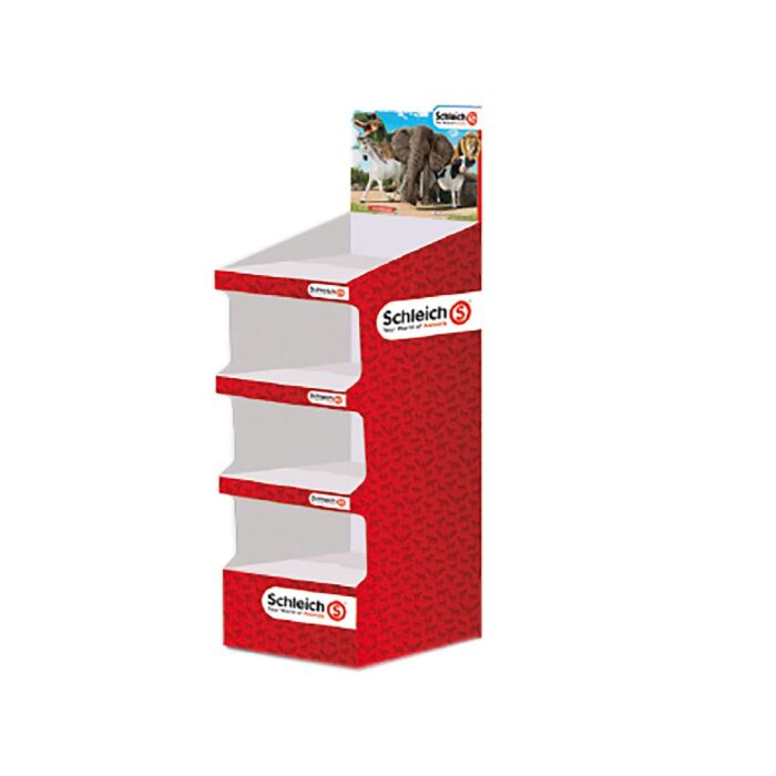 Vielseitiges Karton-Display von Schleich, perfekt für die Präsentation Ihrer Produkte. Dieses Display wird mit einer thematisch passenden Kopfkarte geliefert und hat Abmessungen von 60 x 35 x 165 cm. Es wird flach verpackt geliefert und lässt sich leicht montieren.