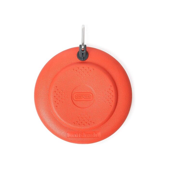 Das durchdachte Design der Dexas Offleash Flyer umfasst einen integrierten Schlüssel, der es ermöglicht, das Hundespielzeug einfach mit der Hundeleine zu verbinden oder zu lösen. So entfällt die Notwendigkeit, die Frisbee in der Hand oder Tasche mitzunehmen. Darüber hinaus sorgt die bunte orange Farbe dafür, dass der Flyer sowohl im Wasser als auch im Freien gut sichtbar bleibt.