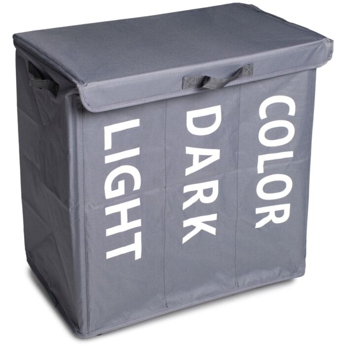 Met zijn gebruiksvriendelijke ontwerp en 3 vakken is de wasmand zeer praktisch. De handige draaggrepen en 4 wielen zorgen voor eenvoudige mobiliteit. De deksel met klittenband houdt de was op zijn plaats en voorkomt vermenging van verschillende kleuren.