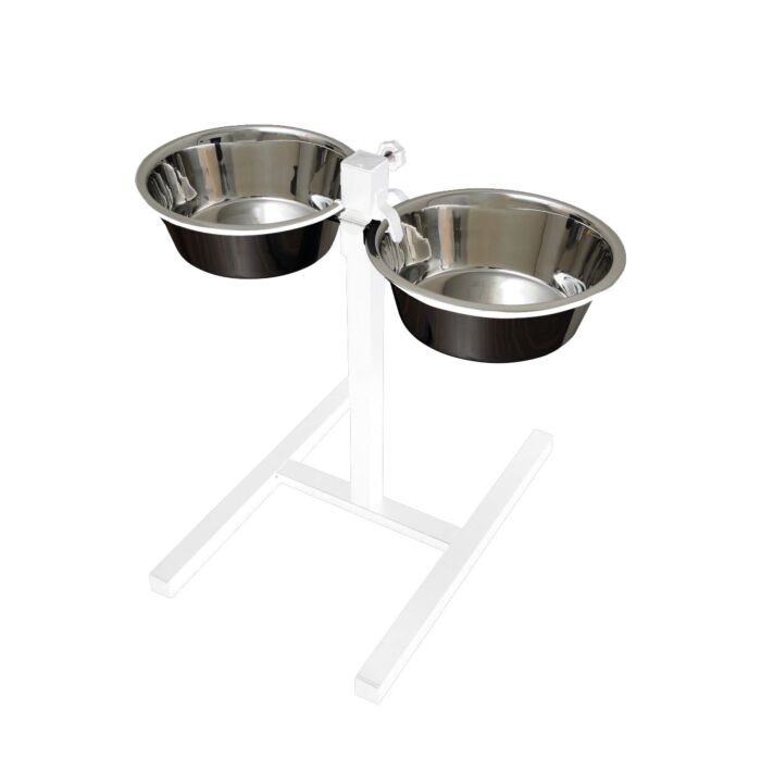 Der H-Standard hat eine Höhe von 60 cm und einen Durchmesser der Edelstahlschalen von 20 cm. Er ist aus hochwertigen Materialien gefertigt, die nicht nur langlebig, sondern auch hygienisch sind. Die Doppelbehälter bieten eine Füllmenge von jeweils 1.8 Litern, was für ein ausgewogenes Futterangebot sorgt.