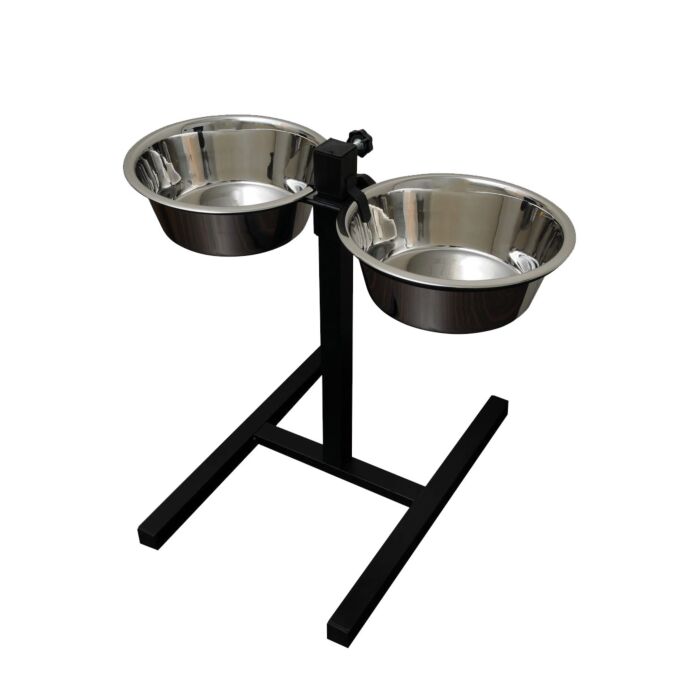 Der H-Standart hat eine Stehhöhe von 60 cm und ist mit zwei Edelstahl-Schalen ausgestattet, die einen Durchmesser von 20 cm aufweisen. Diese Kombination sorgt nicht nur für Stabilität, sondern erleichtert auch die Reinigung. Die Verwendung von rostfreiem Edelstahl garantiert eine hohe Langlebigkeit und einfache Handhabung in der Pflege.