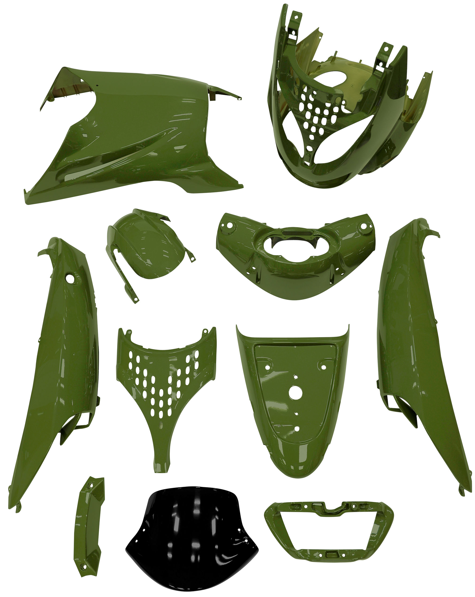 Diese Plaatset enthält eine Vielzahl von Karosserieteilen, darunter das große und kleine Vorderradschutzblech, das Bremsabdeckblech, die Innenseite der Instrumententafel und verschiedene Verkleidungsteile. Jedes Teil wurde so entworfen, dass es sowohl funktional als auch ästhetisch ansprechend ist, um die gesamte Erscheinung Ihres Aprilia Fahrzeugs zu verbessern.