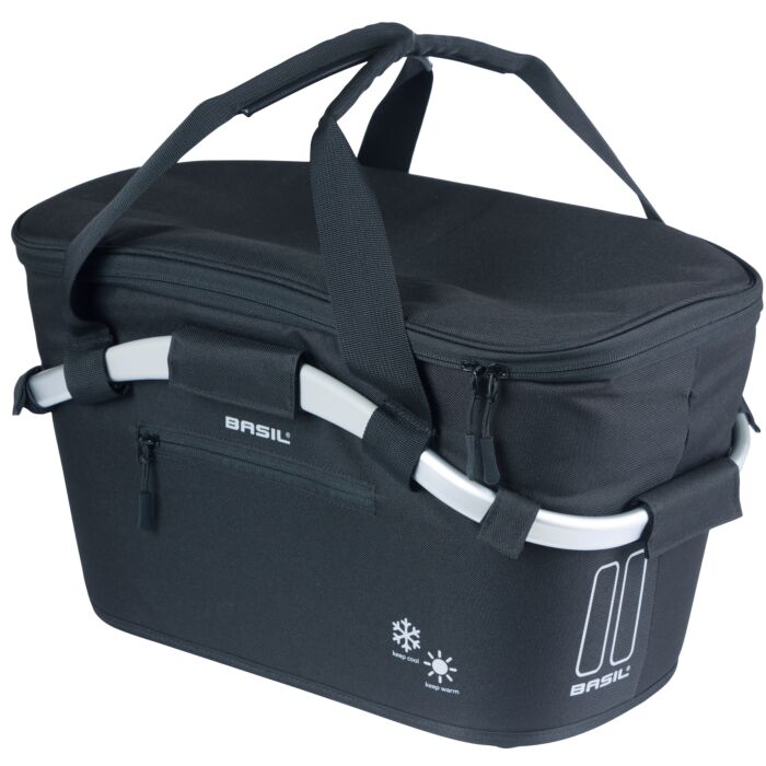Maak kennis met de Basil Classic Carry All ISO. De perfect geïsoleerde fietsmand voor achterop je fiets, die ervoor zorgt dat wat warm is warm blijft en wat koud is gekoeld blijft. Met een inhoud van 18 liter biedt deze lichtgewicht en afneembare mand voldoende ruimte, en dankzij de isolerende binnenvoering blijven alle items op de juiste temperatuur.