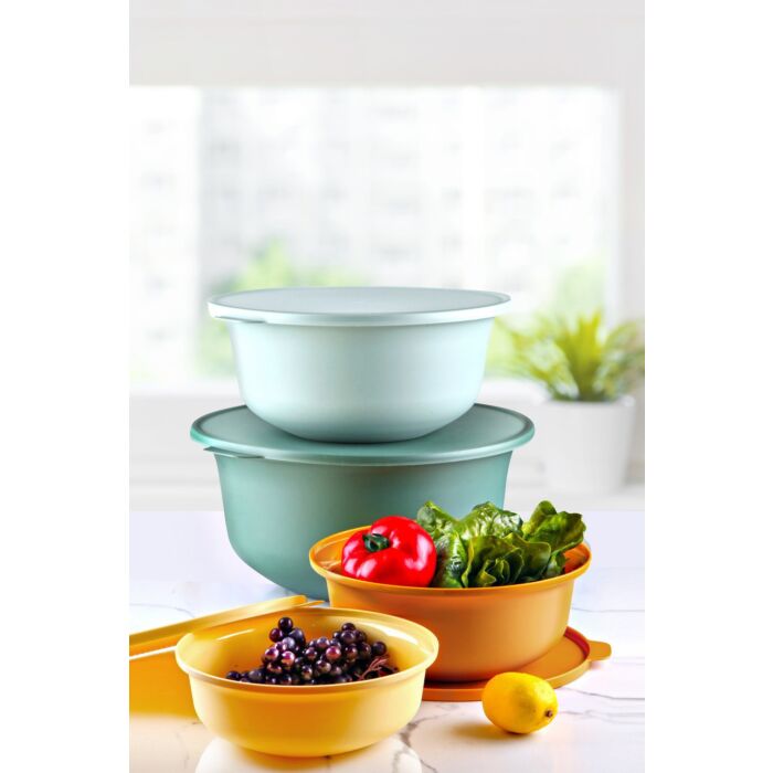 Asir | Opbergdozenset | 4 Stück in Farben Grün, Türkis, Orange und Gelb, 8000 ml bis 1000 ml