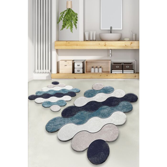 Asir | Badmattenset | 2-teilig | Antibakterielle Eigenschaften | Blau | 60 x 100 cm