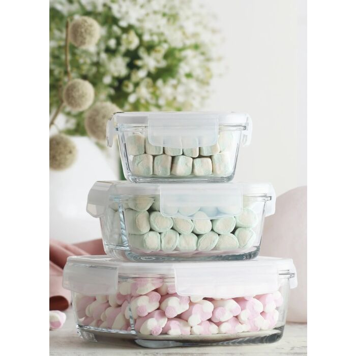Erleben Sie die Schönheit und Funktionalität unserer Glasaufbewahrungsboxen. Verwandeln Sie Ihre Küche und erhöhen Sie Ihre Aufbewahrungsmöglichkeiten mit unserem Set aus Glasaufbewahrungsboxen. Hergestellt aus 100 % Glas sind diese Aufbewahrungsboxen nicht nur optisch beeindruckend, sondern auch unglaublich langlebig.