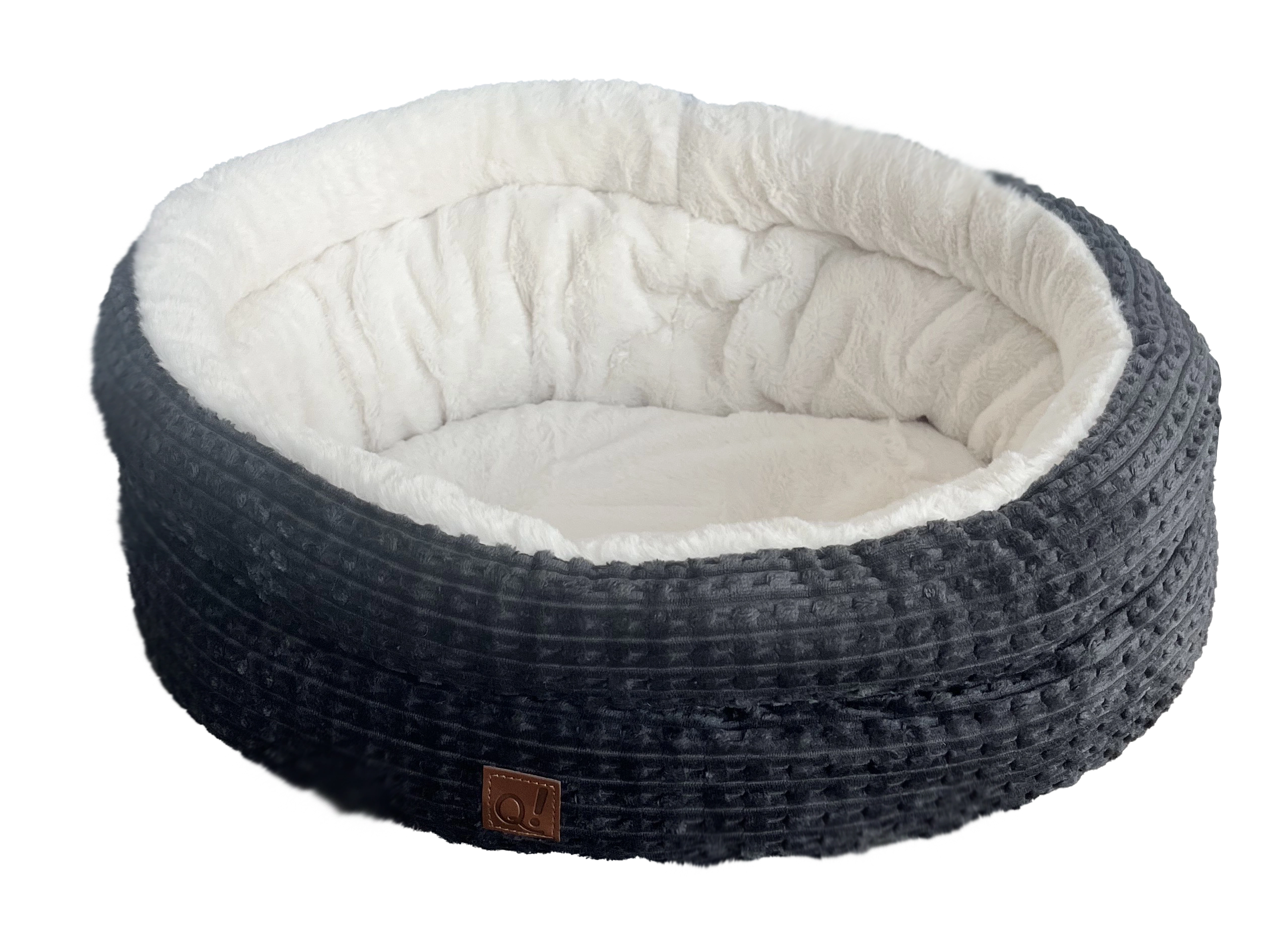Diese Hundeplattform kombiniert Funktionalität mit einem stilvollen Design. Das elegante Grau und das geriffelte Muster sorgen dafür, dass sie in jedes Wohnambiente passt. Die Innenpolsterung aus hochwertigem Plüsch sorgt sowohl für Komfort als auch für Wärme, ideal für entspannte Nächte und Erholungszeiten.