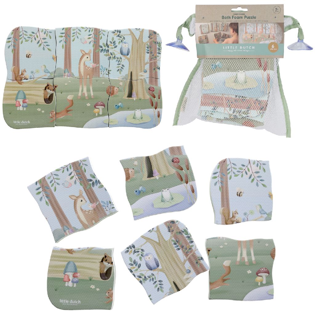 Das Little Dutch Badspielzeug in Form eines bunten Schaumstoffpuzzles sorgt für viel Spaß und Unterhaltung in der Badewanne. Mit 6 liebevoll gestalteten Teilen, die zusammen eine fröhliche Szene aus dem Forest Friends Thema bilden, ist es perfekt für kleine Entdecker. Die lebhaften Farben und freundlichen Tiere fördern die Fantasie und das Spielvergnügen der Kinder.