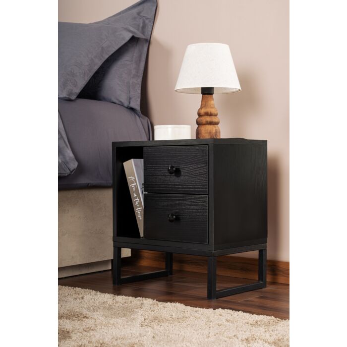 Asir | Nachttisch | Holz Schwarz & Schwarz | 45,2 x 29,5 x 50 cm