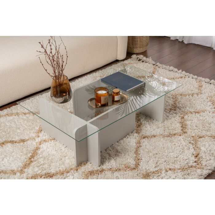 Verleihen Sie Ihrem Wohnraum mit unserem stilvollen Couchtisch aus grau gehärtetem Glas einen Hauch von Eleganz. Dieses moderne Design wird schnell zum Blickfang in jedem Raum und fügt eine raffinierte Note in Ihre Einrichtung ein.