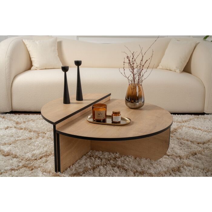 Die Salontisch ist aus 100% melaminbeschichtetem Spanplatten gefertigt, was sie nicht nur ansprechend, sondern auch langlebig macht. Die Materialstärke von 18 mm sorgt für Stabilität und Festigkeit, während die schwarzen Kanten dem Design eine moderne Note verleihen.