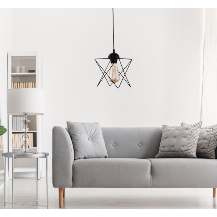 De kroonluchter heeft een metalen constructie met een matte zwarte afwerking. De onderkant van de kroonluchter meet 21 cm, terwijl de kap 18 cm lang is. Met een verstelbare kabel kan de hoogte tot 60 cm worden aangepast, waardoor deze perfect past in zowel hoge als lage ruimten.
