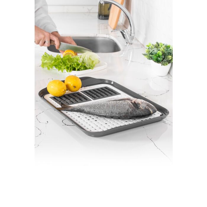 Maximieren Sie Ihren Küchenraum dank der perfekten Maße von 41,5 x 30 cm. Dieses kompakte, aber geräumige Afdruiprek bietet ausreichend Platz für all Ihre Teller, Küchenutensilien sowie Töpfe und Pfannen. Das durchdachte Design enthält ein separates Fach für Besteck, wodurch Sie einfach darauf zugreifen können und es nicht verloren geht oder durcheinander gerät.