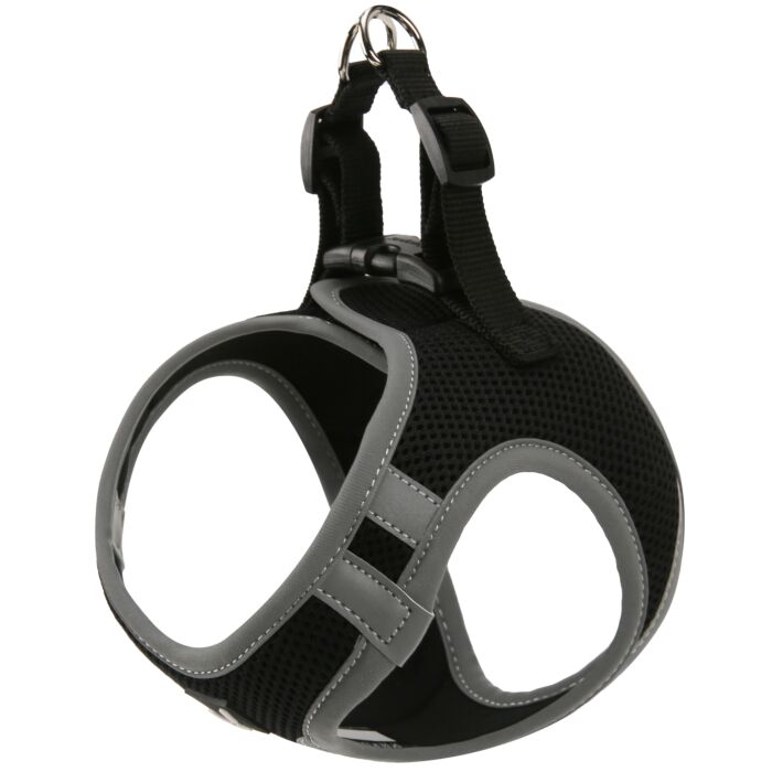 Het harnas is verkrijgbaar in drie maten, zodat het perfect past bij de lichaamsbouw van je hond. Het is vervaardigd uit ademend air-mesh materiaal dat zorgt voor koelte, zelfs op warme dagen. De zachte neopreen voering beschermt de huid van je hond en voorkomt schuring, wat essentieel is voor lange wandelingen.