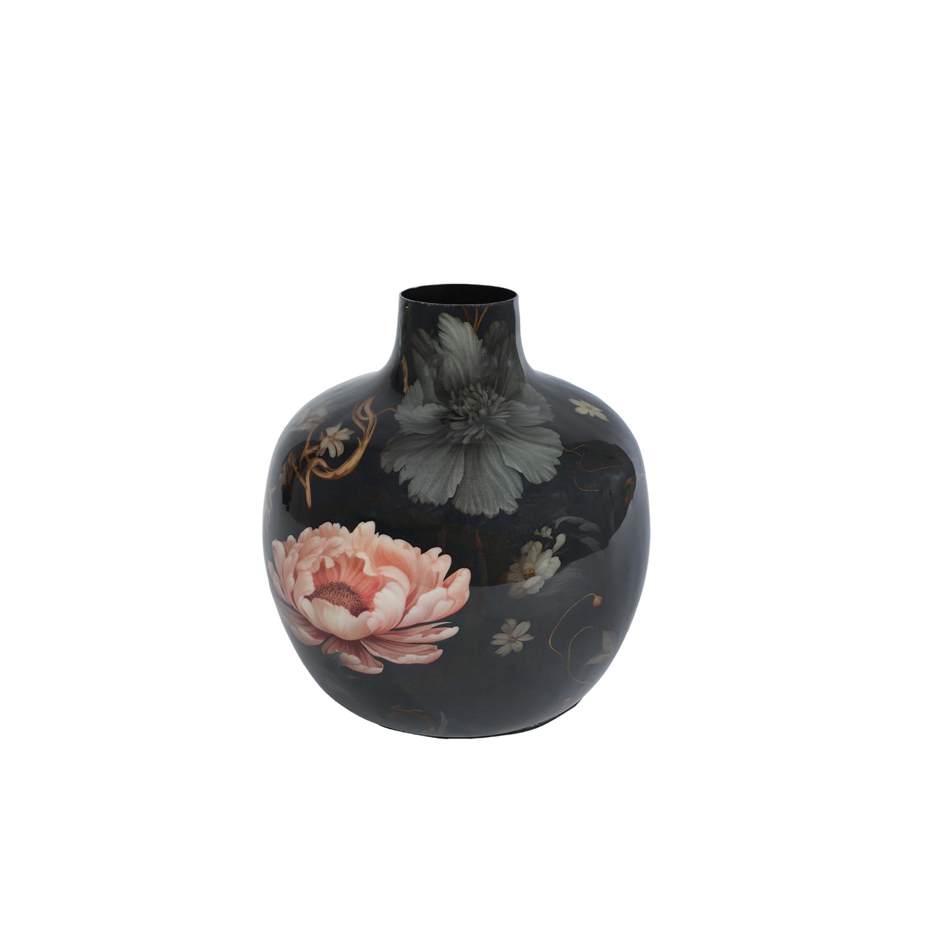 Die Vase hat die Maße 18 cm x 18 cm x 18 cm und ist aus stabilem Metall gefertigt. Die schwarze Farbe verleiht der Vase eine elegante Note und passt zu vielen Einrichtungsstilen, von modern bis klassisch.