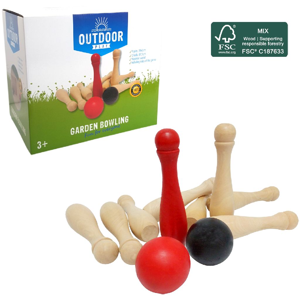 Outdoor Play | Garten Bowling Set | 9 Kegel & 2 Bälle mit Tragetasche