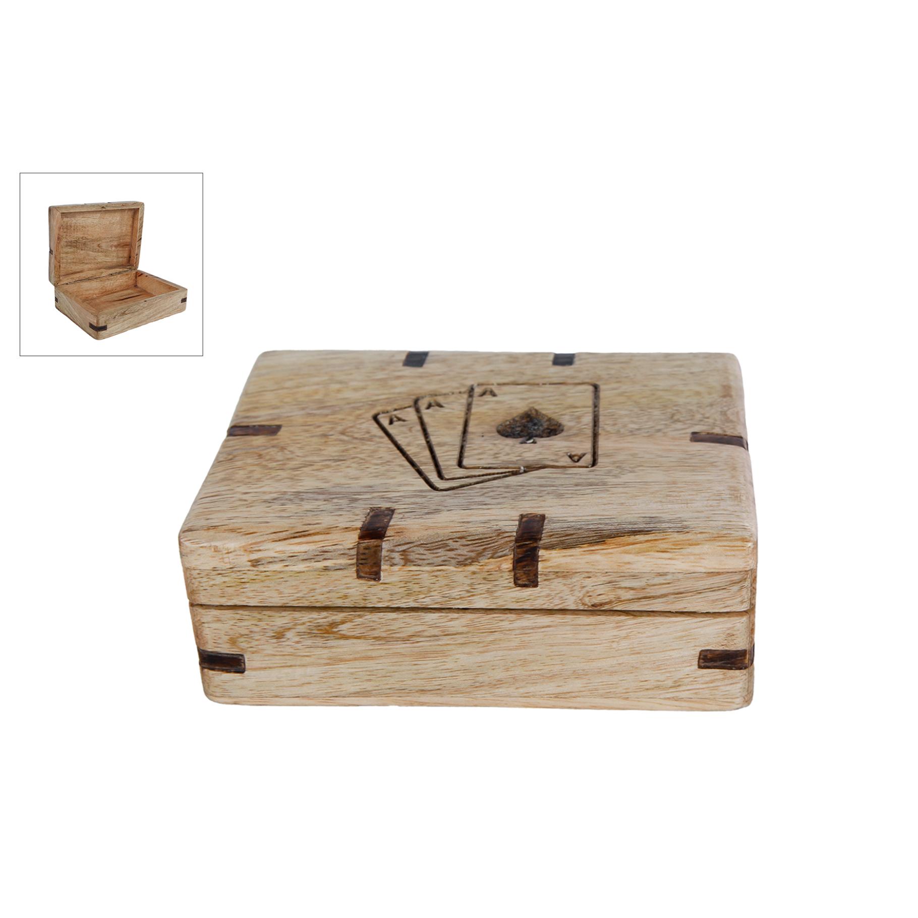 Die Doos Cards für Spielkarten aus edlem Mango-Holz bietet eine elegante Lösung zur Aufbewahrung Ihrer Spielkarten. Mit einem kompakten Maß von 12 x 9 x 4 cm ist sie nicht nur praktisch, sondern auch ein wunderschönes Accessoire für jeden Kartenspiel-Enthusiasten.