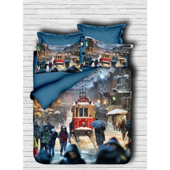Das herausragende Design präsentiert sich durch eine hochwertige 3D-Drucktechnik, die für einen eleganten und ansprechenden Look sorgt. Die harmonische Kombination aus dunkelblau, weiß und blauen Farbnuancen bringt eine ruhige und einladende Atmosphäre in Ihr Schlafzimmer.