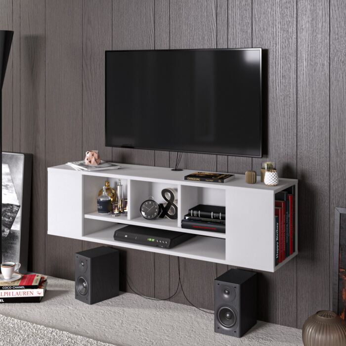 Die Verwendung ist einfach und unproblematisch. Organisieren Sie Ihre Mediengeräte, DVDs und weitere Artikel effizient auf den geräumigen Regalen des Standarts. Verabschieden Sie sich von unordentlichen Kabeln und heißen Sie Ihr neues, sauberes Wohnzimmer willkommen.