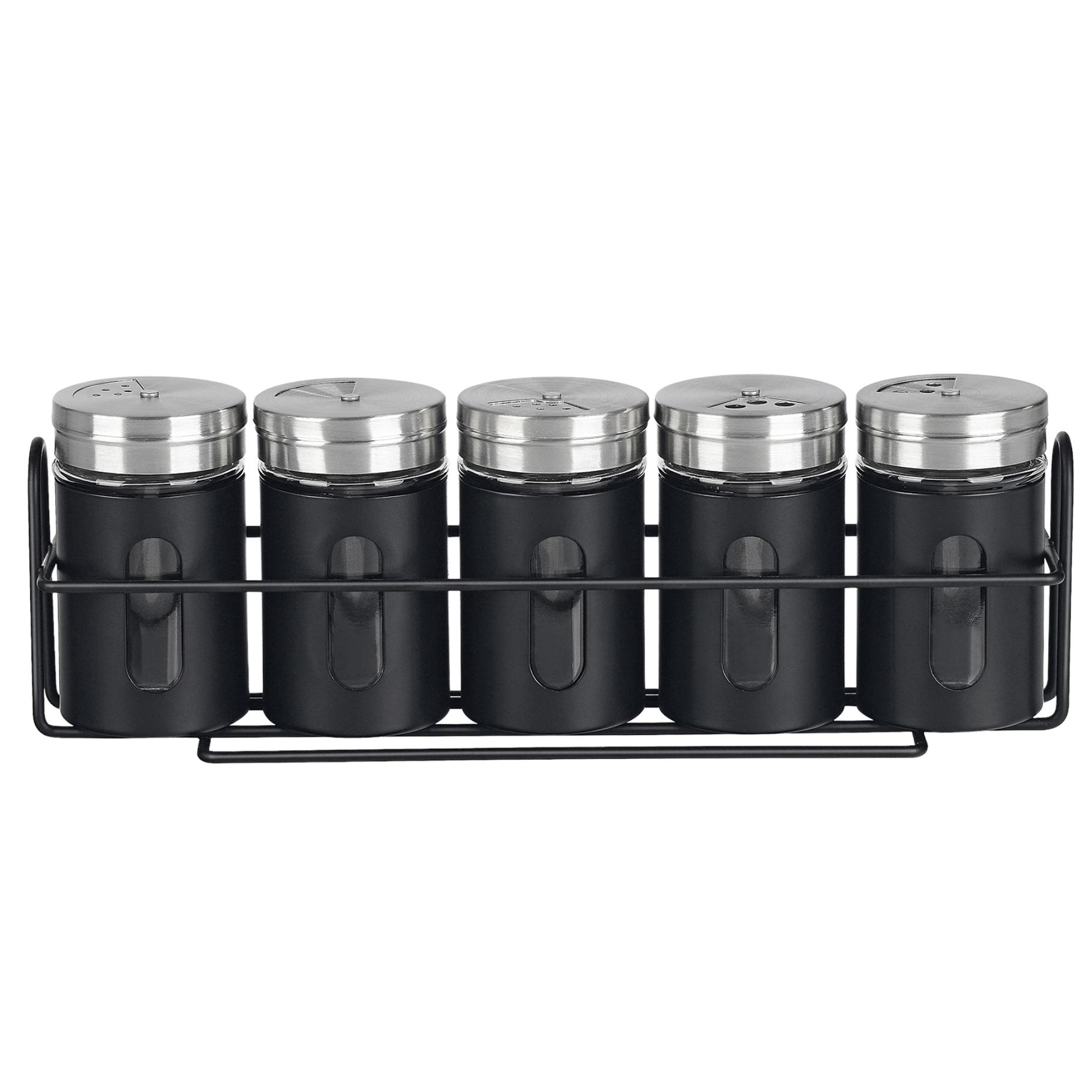 Kruidenstrooier | 5 Stück | Schwarz mit Regal