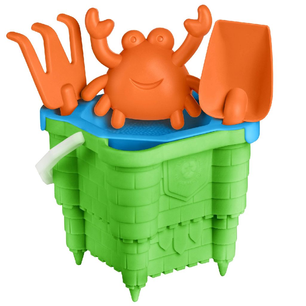 - Enthält kastenförmigen Eimer, Schaufel, Rechen, Sieb und Krabbenform