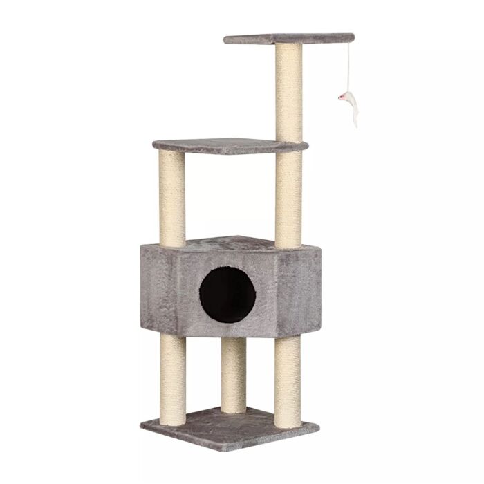 Die vier robusten Sisalpalen ermöglichen es Ihrer Katze, ihre Krallen zu wetzen und verbessertes Kratzverhalten zu gewährleisten. Dies fördert gesunde Krallen und verringert unerwünschtes Kratzen an Möbeln. Darüber hinaus sorgt das kleine, oben befestigte Spielzeug für zusätzliche Bewegung und regt den natürlichen Jagdinstinkt Ihrer Katze an. Der gesamte Kratzbaum ist mit angenehm weichem Plüsch bezogen, was nicht nur den Komfort erhöht, sondern auch eine luxuriöse Ausstrahlung verleiht. Die hellgraue Farbe macht die Krabpaal zu einer stilvollen Ergänzung in Ihrem Wohnbereich.