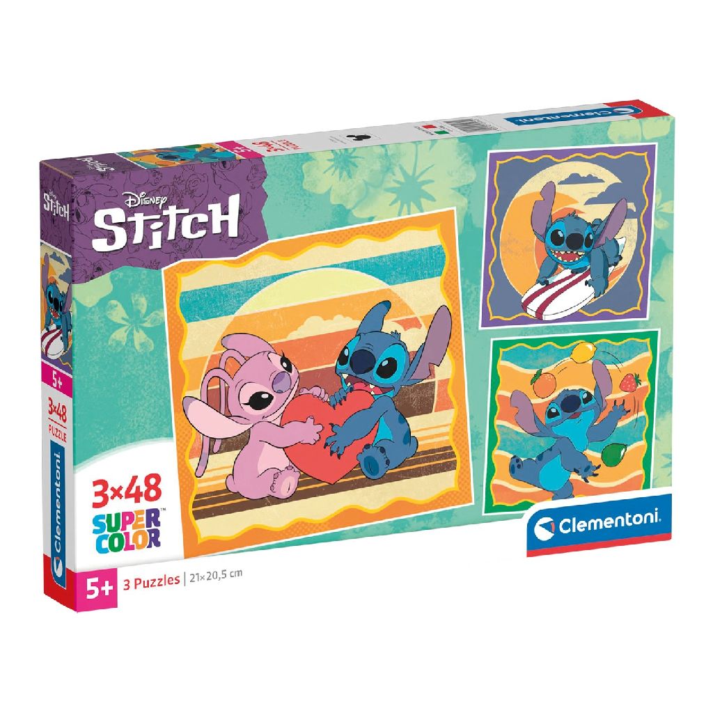 Das Clementoni Puzzle 3x48 Stück Disney Stitch bietet eine abwechslungsreiche Herausforderung für kleine Puzzle-Fans. Jedes der drei Puzzles besteht aus 48 hochwertigen Teilen und zeigt den beliebten Charakter Stitch aus dem Disney-Universum. Es ist perfekt für Kinder ab 4 Jahren geeignet und fördert spielerisch die Feinmotorik sowie die Konzentration und Geduld der Kinder.