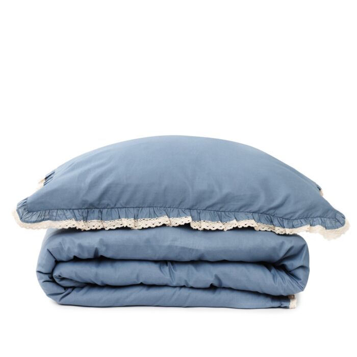 HOMLA | Bettwäsche | MOISES | Baumwolle Blau mit Spitze | 160x200 cm
