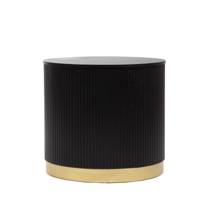 Der TABI Beistelltisch ist perfekt für das Wohnzimmer, wo er es Ihnen ermöglicht, bequem Tassen Kaffee und eine Platte mit Snacks während eines Besuchs bei einem Freund abzulegen. Sie können ihn auch als Nachttisch im Schlafzimmer verwenden. Der Tisch ist in Schwarz mit mattierter Oberfläche gehalten, und der goldene Streifen verleiht eine elegante Note. Er passt wunderbar in stilvolle moderne Räume und luxuriöse Glamour-Interieurs.
