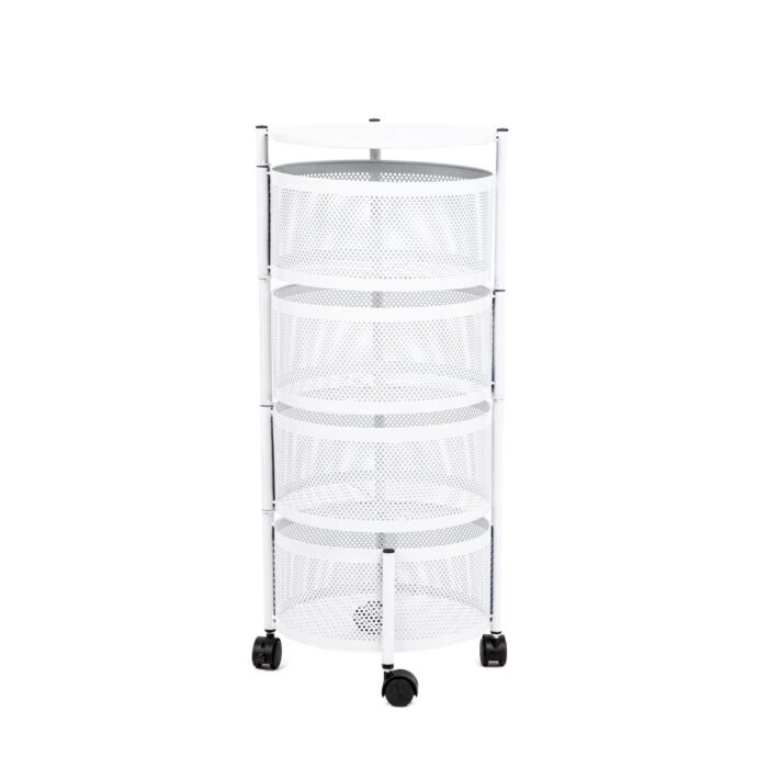 Das Rack hat die Maße 34x34x75 cm und besteht aus hochwertigem, pulverbeschichtetem Metall in Weiß. Diese Materialien sorgen für eine hohe Stabilität und Langlebigkeit, während die elegante Weißlackierung das Design modern und ansprechend wirken lässt.