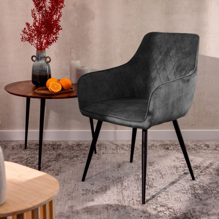 Auf der Suche nach schönen und bequemen Stühlen für Ihr Zuhause? Der SATORI-Stuhl ist die perfekte Wahl. In einem tiefen grafitfarbenen Farbton und mit einem anspruchsvollen Design verkörpert er moderne Eleganz, die sich perfekt in jedes Interieur einfügt. Die weiche, samtige Polsterung bietet außergewöhnlichen Komfort, wodurch er ideal für lange Abendessen oder zum Entspannen mit einem Buch geeignet ist.