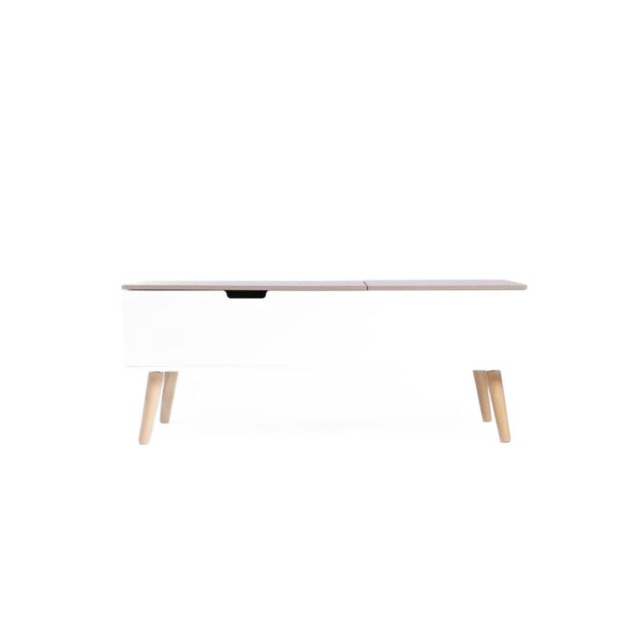 Der ANZABI Couchtisch vereint modernes Design mit Praktikabilität. Die weiße Tischplatte in Kombination mit dem natürlichen Holz der Beine verleiht dem Raum Leichtigkeit, und die Hebetischplatte ermöglicht eine komfortable Nutzung beim Entspannen. Kleine Dinge können problemlos griffbereit aufbewahrt werden, während der Tisch aufgeräumt bleibt.