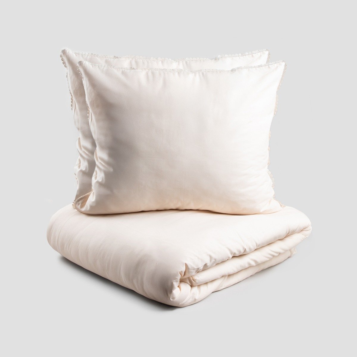HOMLA | Bettwäsche | NERINIA | Baumwolle Beige mit Spitze | 160x200 + 2x70x80 cm