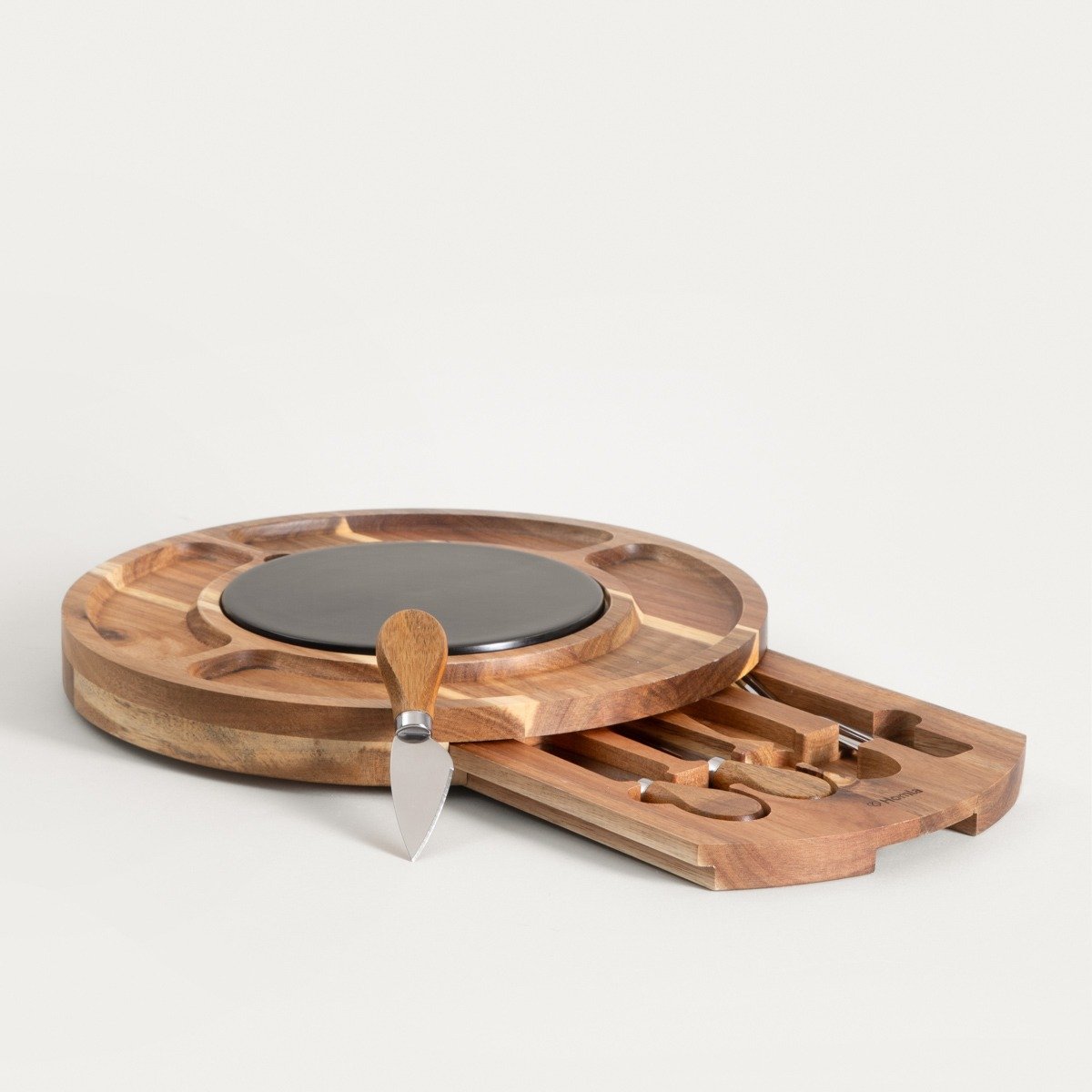 Das FRESCA Set ist sowohl für Partys als auch für den täglichen Gebrauch geeignet - ideal zum Verkosten von Käse, Antipasti, Oliven oder Nüssen. Die ausziehbare Schublade enthält ein Set essenzieller Zubehörteile und macht dieses Set voll ausgestattet und bereit zum Servieren. Außerdem ist es eine hervorragende Geschenkoption.