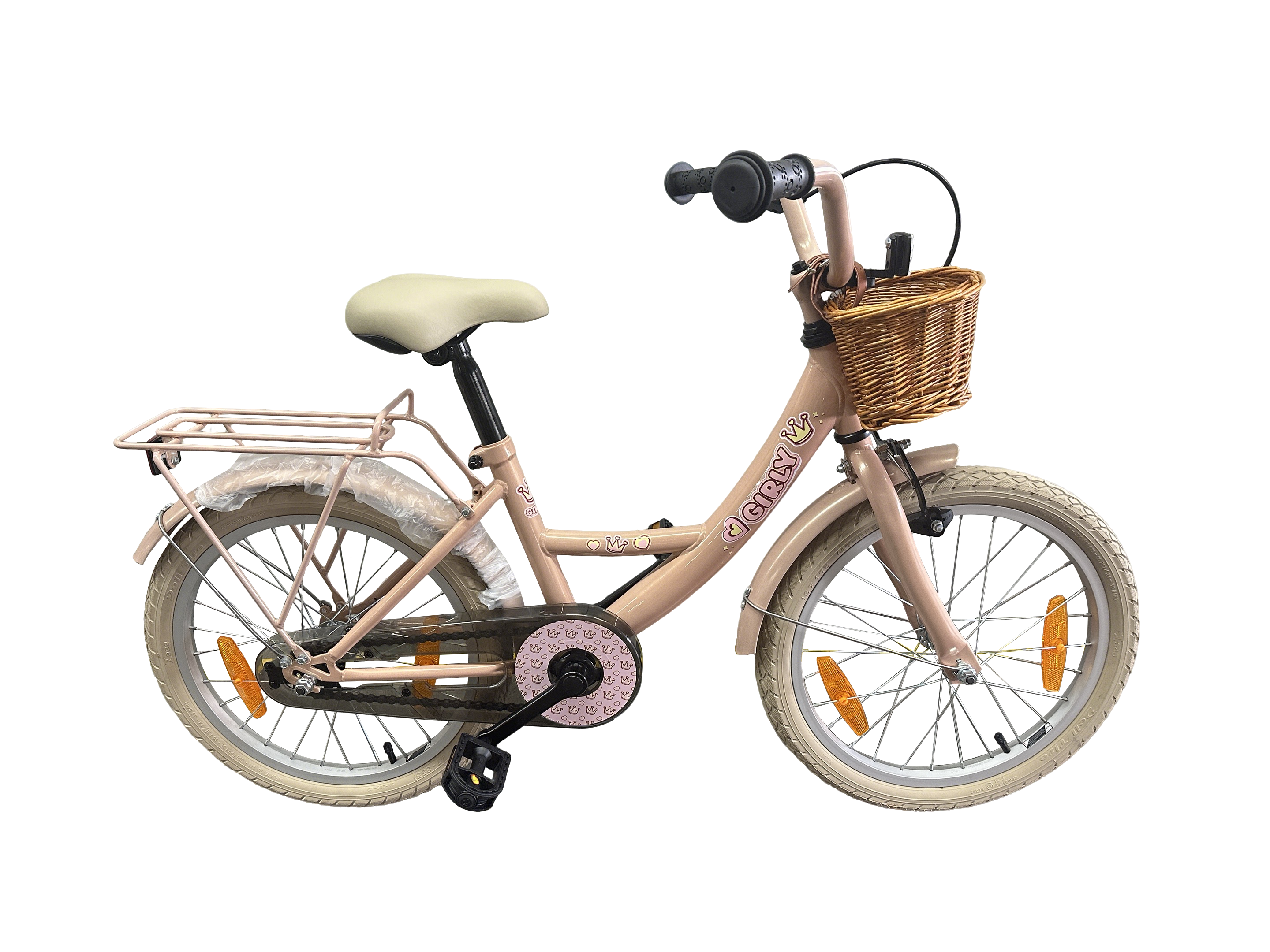 Das Bikefun Girly 18 Zoll ist ein schöner Mädchenfahrrad in einem sanften Rosenton, ideal für Kinder im Alter von ca. 5 bis 7 Jahren. Diese Fahrrad strahlt Stil und Verspieltheit aus mit seinen fröhlichen Prints, einem komfortablen Sattel und praktischen Extras wie einem Gepäckträger sowie dem Rattan-Korb am Lenker. Die robuste Konstruktion und kinderfreundliche Details machen dieses Modell perfekt für den täglichen Gebrauch und längere Fahrten.