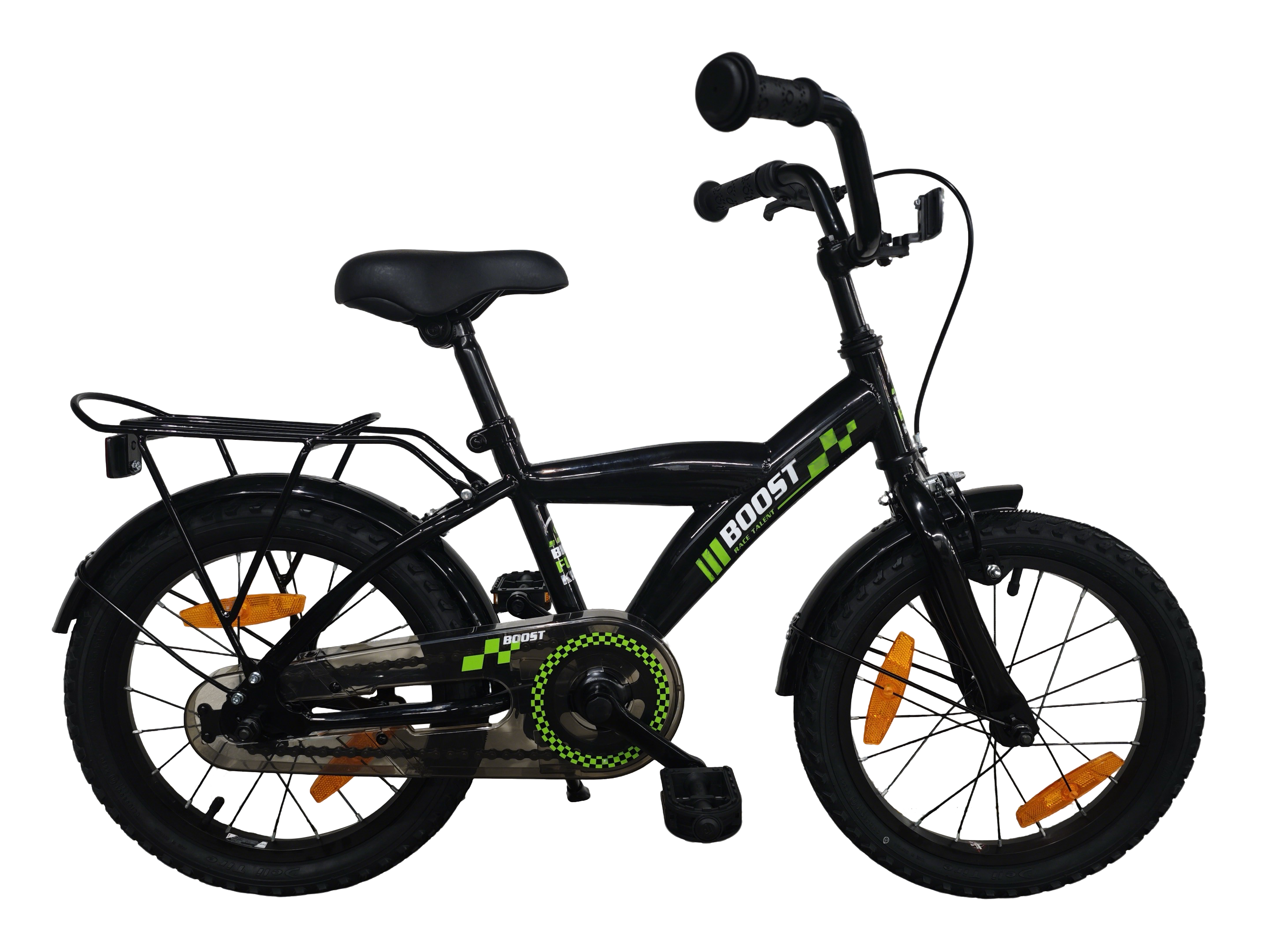 Bikefun | Kinderfiets | Boost 16 Zoll mit Remnaaf - Schwarz mit grünen Akzenten