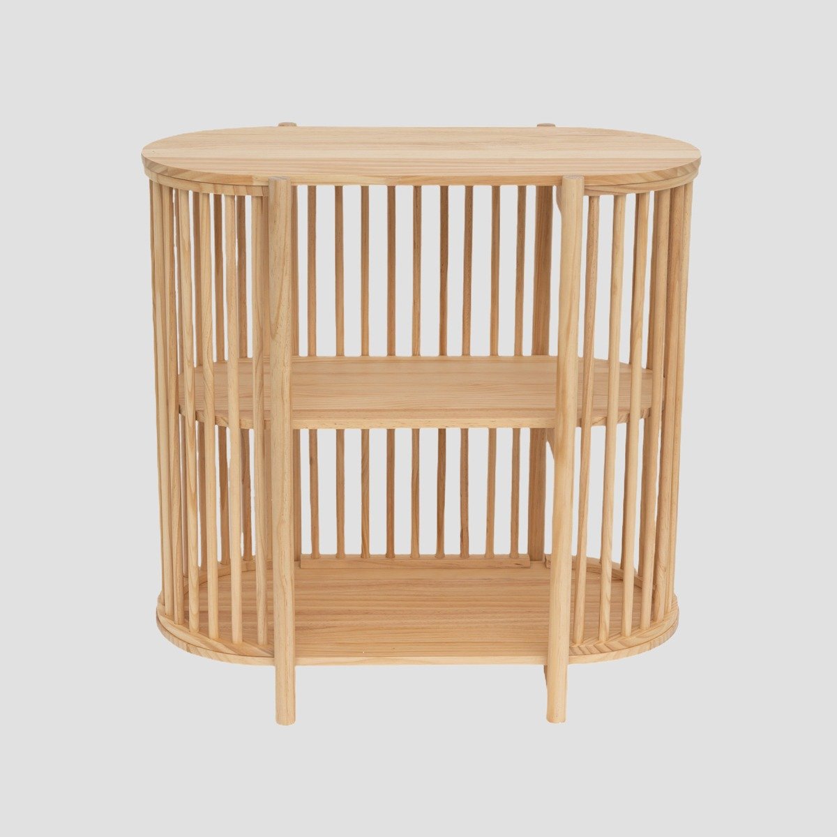 Das SENSUS-Bücherregal fügt sich perfekt in modernes Wohndesign ein. Die ovale Form und die Sprossenstruktur an den Seiten schaffen ein äußerst originales Möbelstück, das mit seiner Einfachheit und Präzision überrascht. Es handelt sich um eine leichte Konstruktion aus Holz, die sowohl mit minimalistischen als auch mit traditionellen Arrangements harmoniert. Wenn Sie ein Möbelstück suchen, das Ihnen über Jahre hinweg erhalten bleibt, trotz sich ändernder Trends, wird das SENSUS-Bücherregal eine sehr gute Wahl sein.