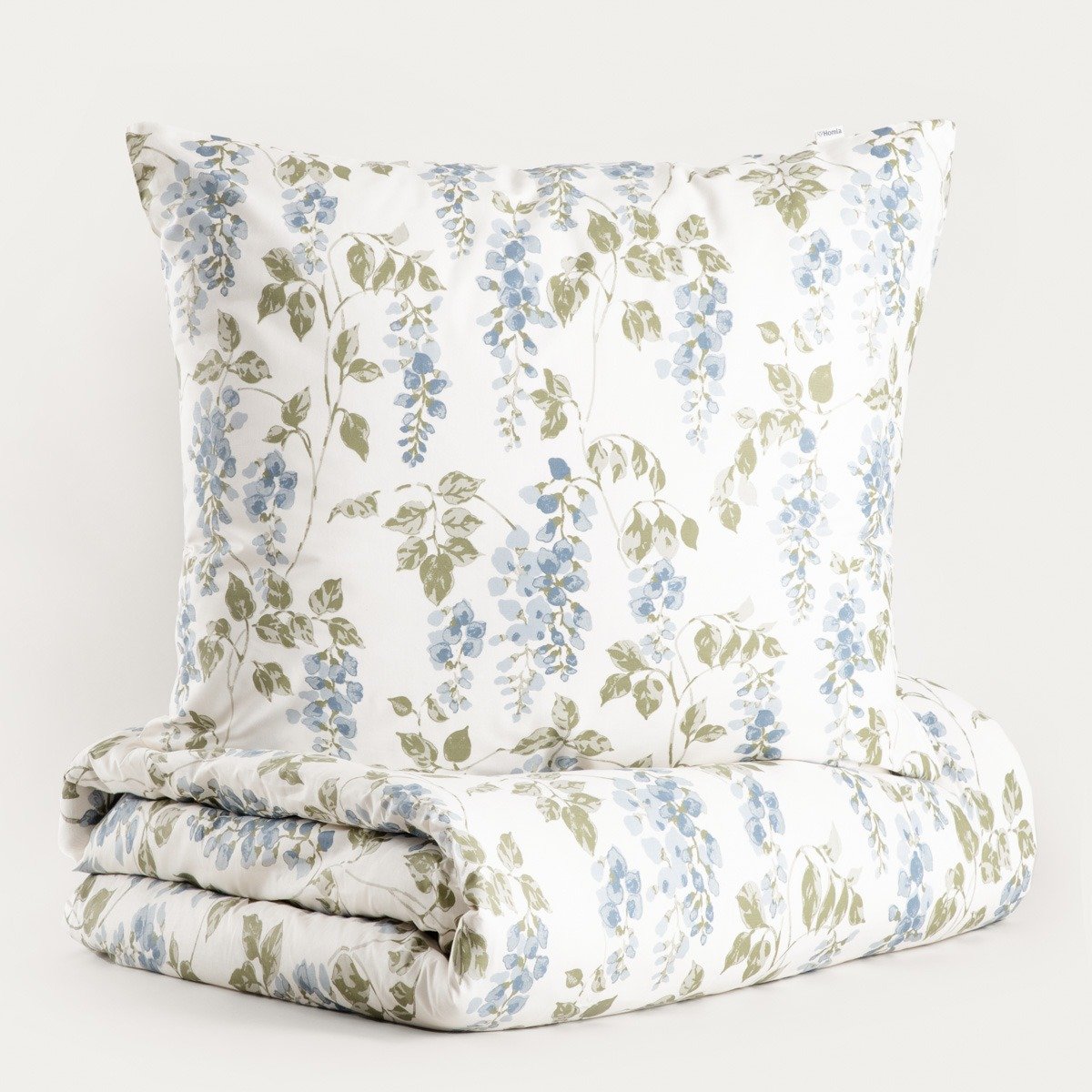 Suchen Sie nach Bettwäsche, die Frische, Leichtigkeit und natürlichen Charme in Ihr Schlafzimmer bringt? Das SELINA Set ist die perfekte Wahl. Das florale Motiv in subtilen Blautönen und Grüntönen auf weißem Hintergrund schafft ein harmonisches Gesamtbild, und die weiche Baumwolle sorgt jede Nacht für einen angenehmen Schlaf.