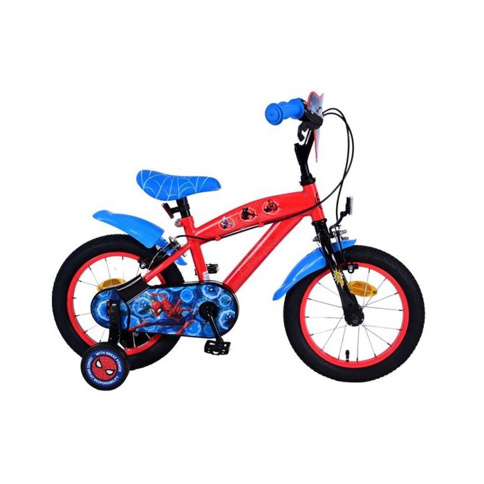 Die Marvel Spiderman 14 Zoll Kinderfahrrad ist die perfekte Wahl für kleine Fahrradfahrer, die gerade das Fahren lernen. Mit einem coolen Design in Blau und Rot ist diese Fahrrad nicht nur ein Blickfang, sondern auch sicher und komfortabel.